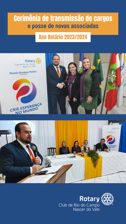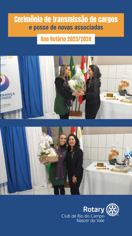Na terça feira (20/06), foi realizada a Cerimônia de transmissão de cargos e posse de novas associadas do Rotary Clube de Rio do Campo - Nascer do Vale.
