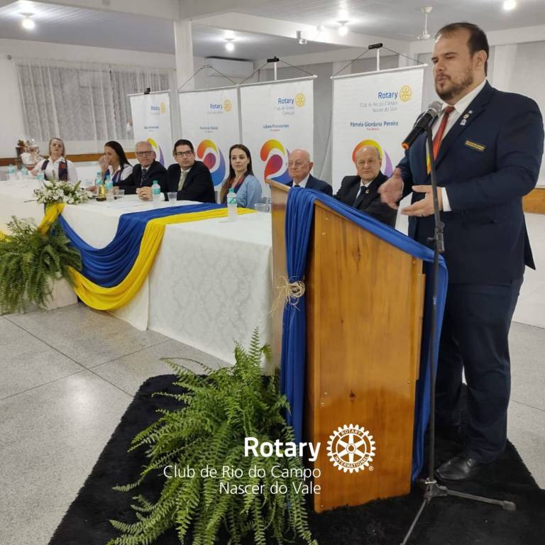 Em seu discurso, Eduardo, enfatizou a importância da saúde mental, tema trazido nesse ano rotário, e de pensarmos além do nosso clube: "Antes do 'club de...' existe o Rotary, somos todos Rotary".