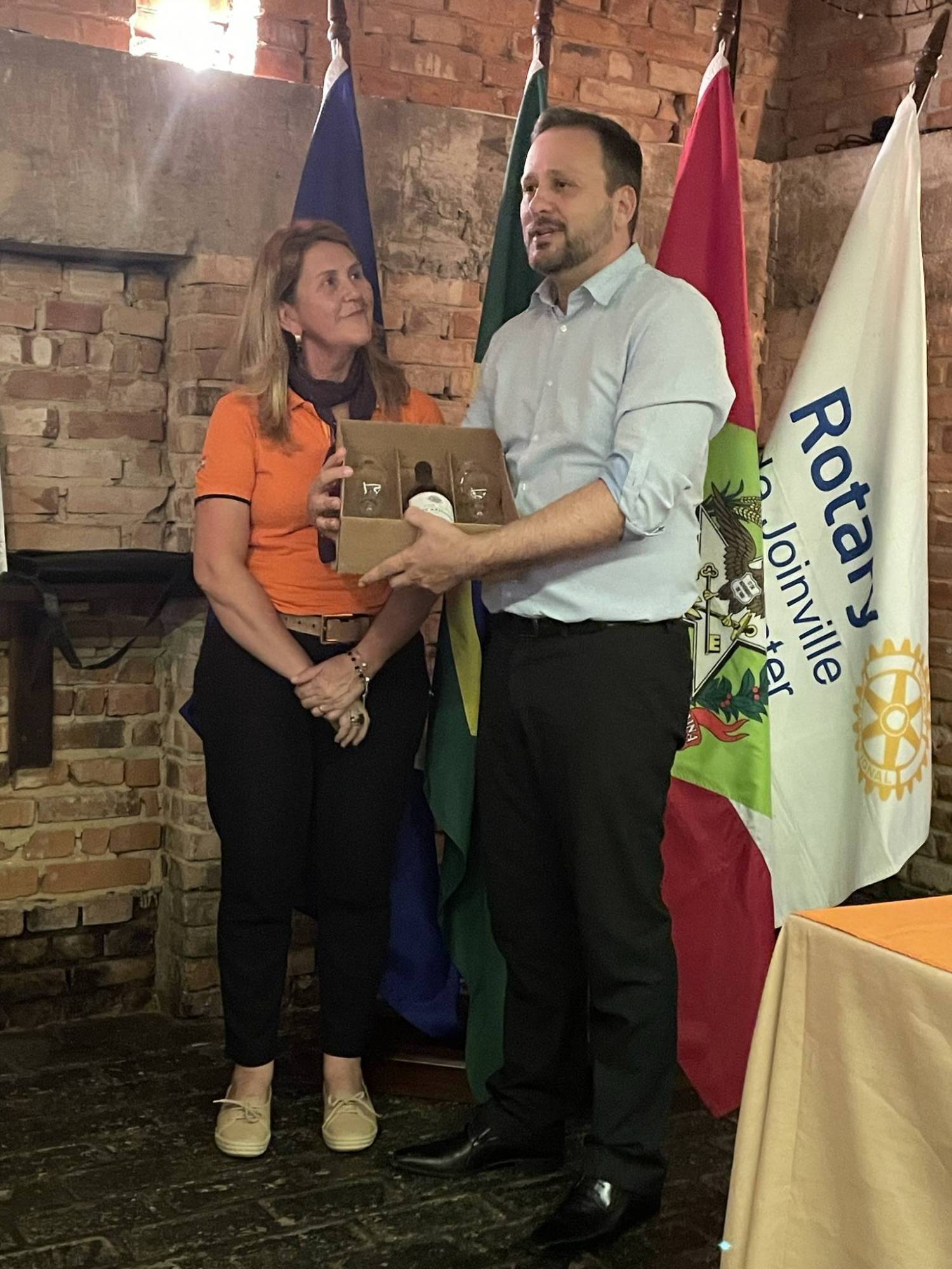 A última reunião do ano rotário 2022-2023 do Rotary Club de Joinville Manchester, realizada no dia 27 de junho, contou com a presença de seu ilustre associado honorário, o prefeito municipal Adriano Silva.