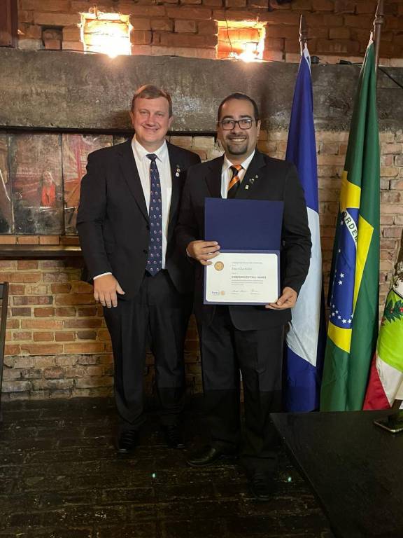 Ontem (20.2.2024), durante reunião festiva que contou com as presenças do governador assistente Klaus Kirchner e do governador distrital Eduardo Pfützenreuter, os companheiros Davi Custódio e Cintia Sanocky Maistrovicz receberam o título de Companheiro Paul Harris.