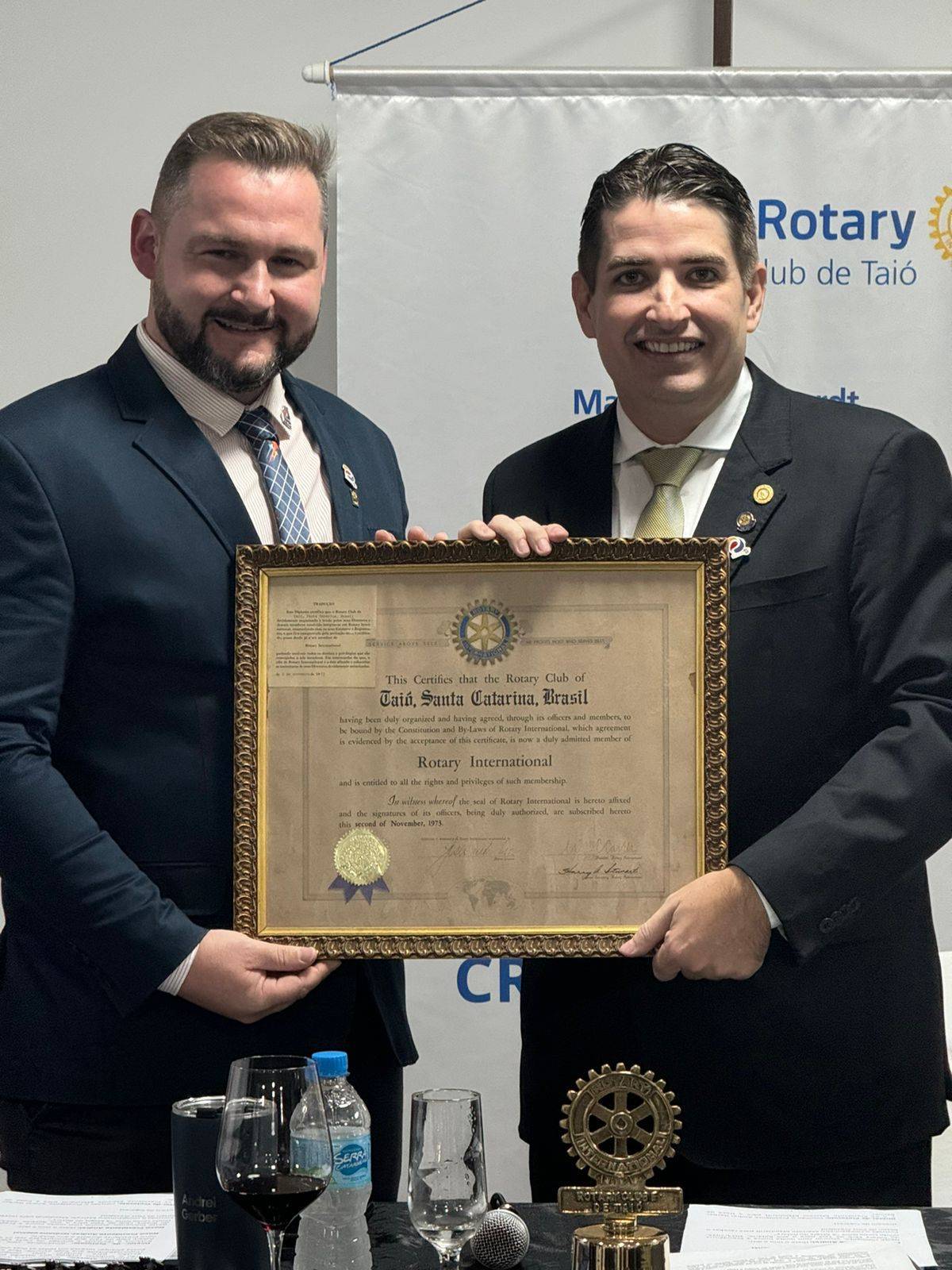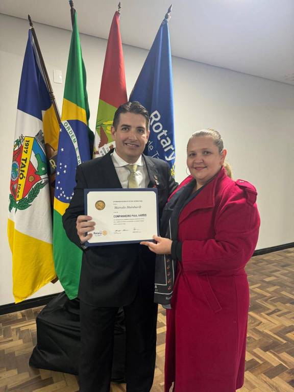 Marcelo Mainhardt, que deixou a presidência após um ano de serviço, foi homenageado com o título Paul Harris, uma das mais altas honrarias concedidas pelo Rotary International. Este título é uma forma de reconhecer contribuições exemplares à causa humanitária e ao fortalecimento dos ideais do Rotary.