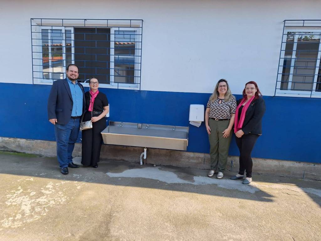 Período da manhã recepção e depoimento da Diretora Lusana da EMEB Presidente Juscelino Kubitschek em Tubarão. Falando sobre o projeto Escola Resiliente e o lavatório que veio através do Subsídio Distrital.