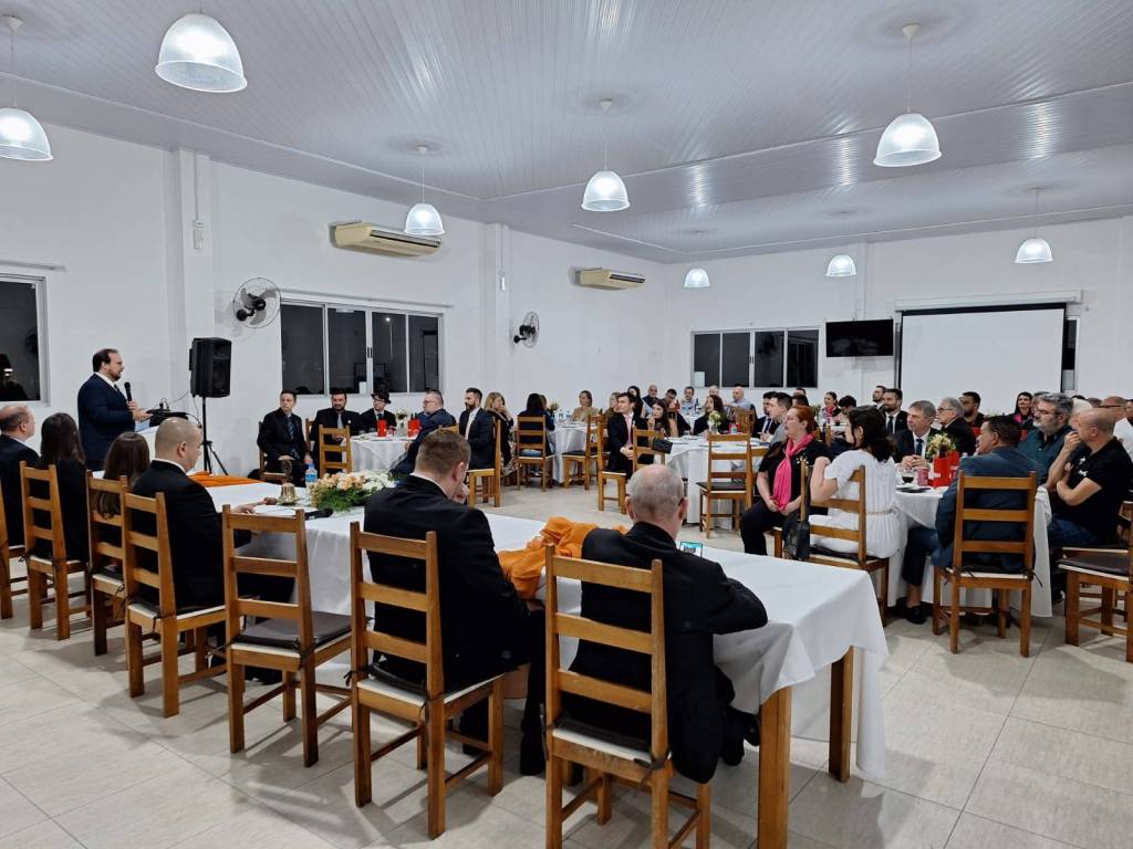 A noite reunião aconteceu na Acart (Associação Casa dos Rotarianos de Tubarão) com a presença de todos os demais Clubes de Rotary e Rotaract de Tubarão.