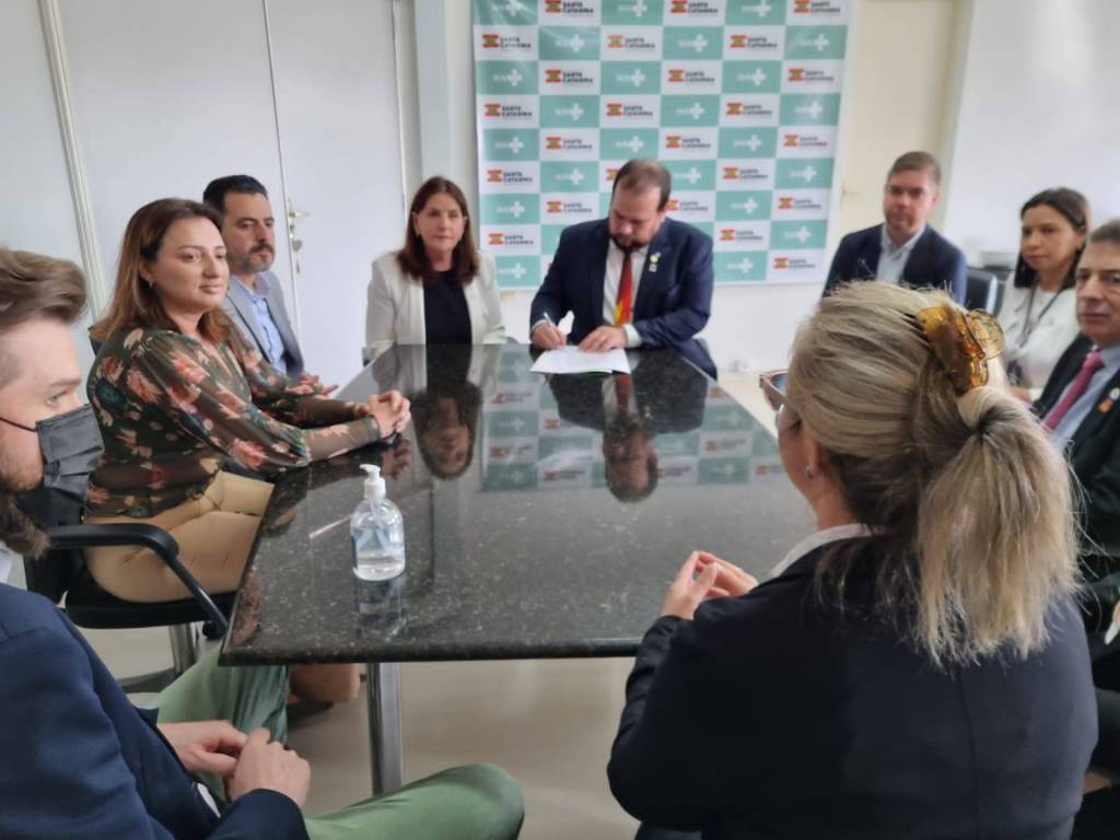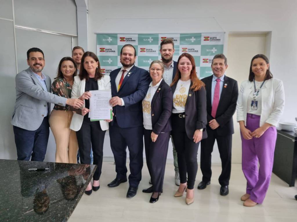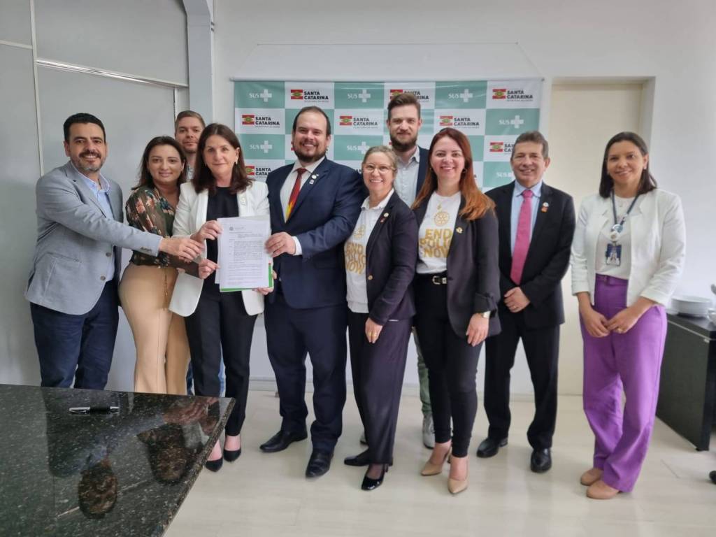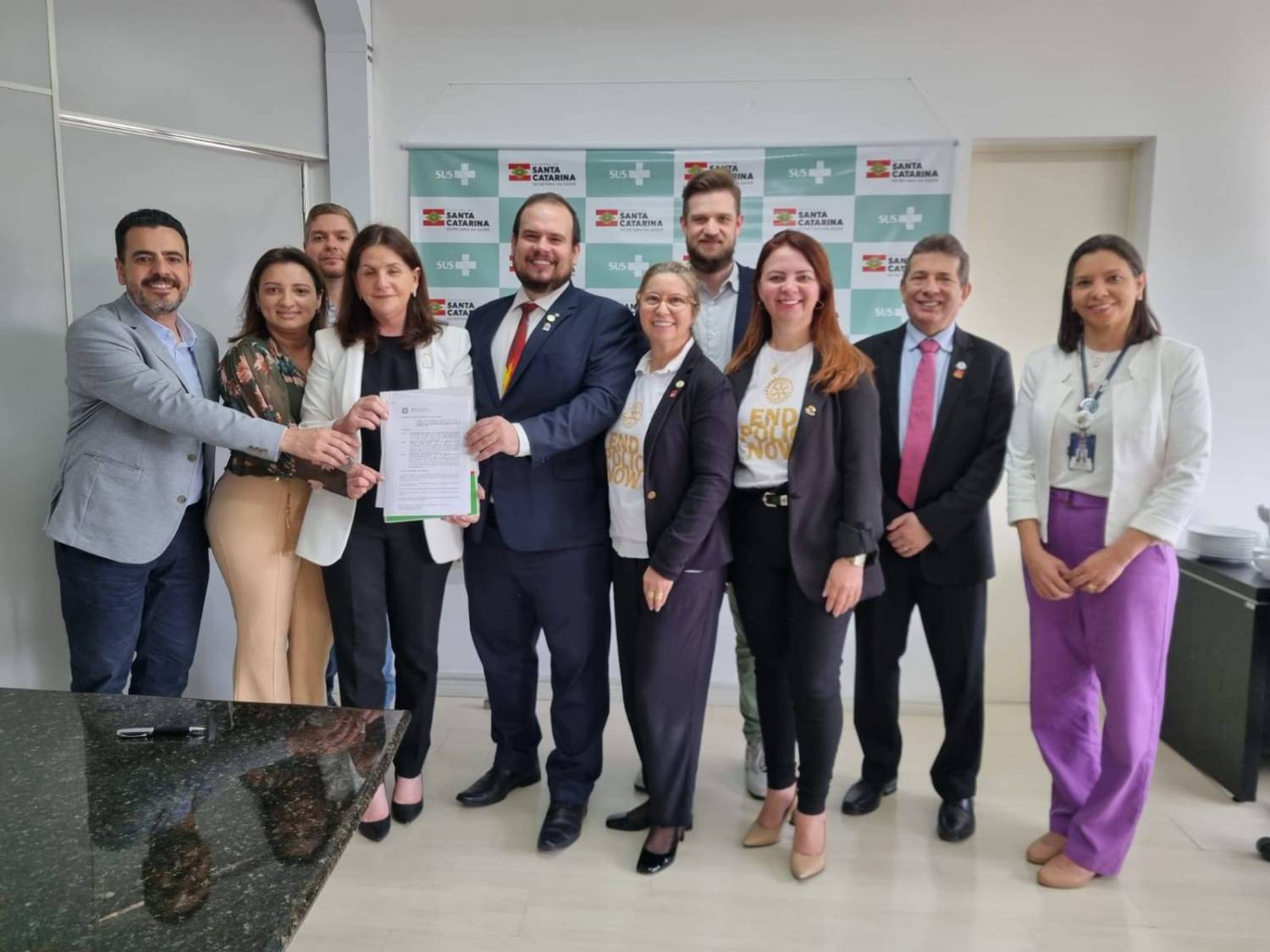 A assinatura de renovação do Termo de Cooperação técnica entre a Secretaria de Saúde de Santa Catarina e o Distrito 4652 e Distrito 4740.