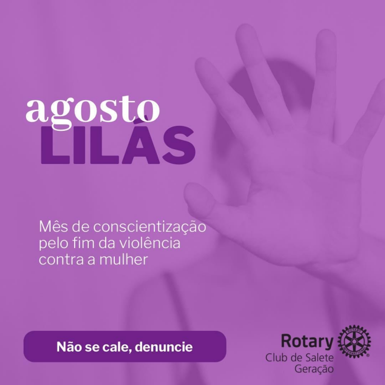 O Rotary Clube de Salete Geração se une à campanha Agosto Lilás, um movimento crucial para a conscientização e o combate à violência contra a mulher. Durante este mês, reforçamos nosso compromisso com a promoção de uma sociedade mais justa, segura e igualitária para todas as mulheres.
