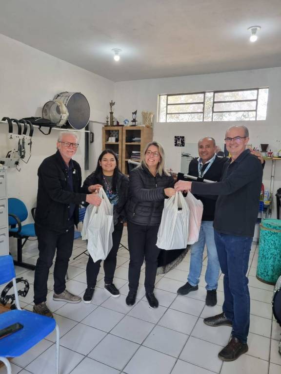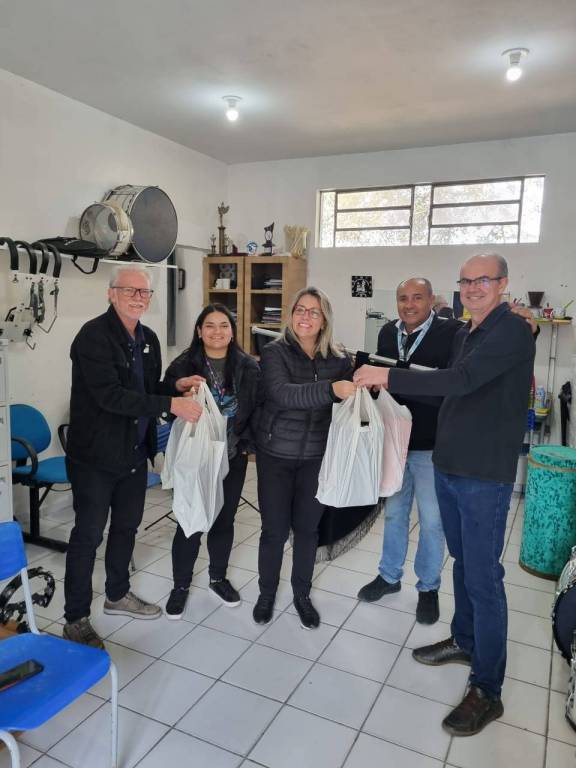 No dia 15/08 foi entregue pelos companheiros José Borba (presidente) e pelo Nivaldo Facchini (tesoureiro) ao Vilson Luiz Baldin (diretor) e Silvana (vice-diretora) da escola Almirante Tamandaré cinco pares de sapatos, após fazerem uma visita nas dependências da escola e no local de treinamento da banda, onde houve um investimento de R$ 647,80.