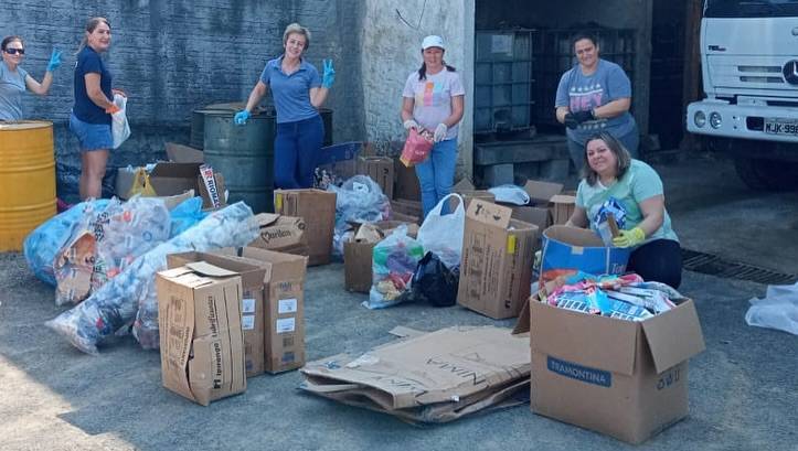 Algumas companheiras se reuniram para separar e vender o reciclado que o clube havia juntado. Essa atividade será realizada todos os meses, para levantar o caixa do clube.