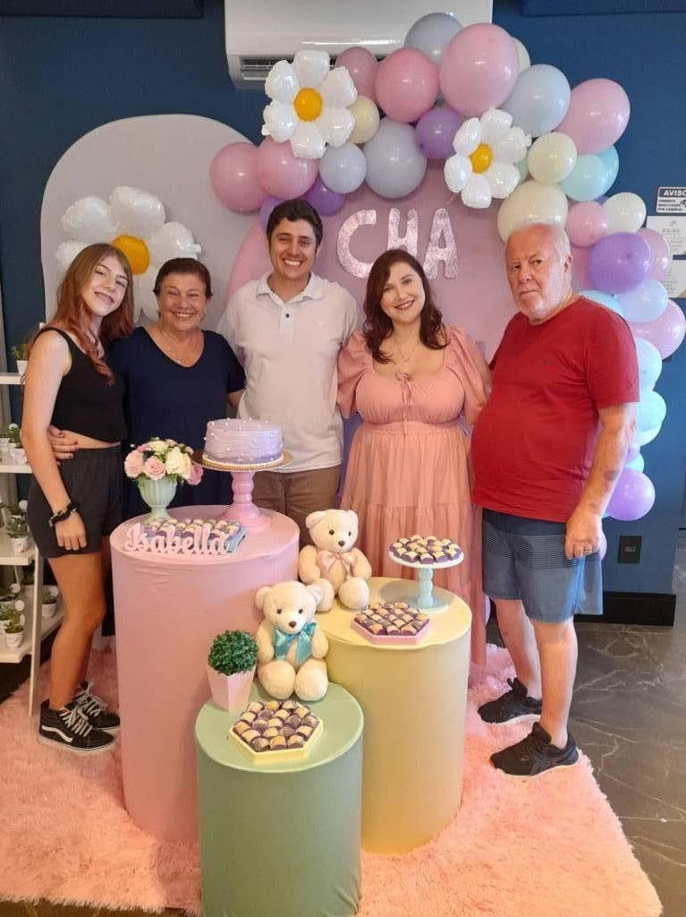 No último sábado, dia 08, tivemos uma festiva muito especial no Rotary Club de Navegantes! Celebramos o Chá de Fraldas da Isabella e o aniversário da futura mamãe e companheira Paloma! 💖🎊