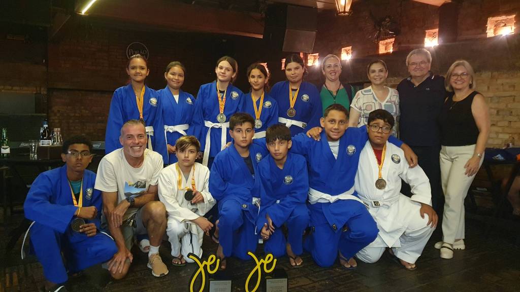 Durante a visita, além de apresentar os excelentes resultados no Jeville 2024 – incluindo o 1º lugar no judô feminino e masculino em grupo, 2 medalhas de ouro, 7 de prata e 2 de bronze – os alunos receberam mais uma surpresa especial: o presidente do clube, Carlos Canto, informou a doação de dez novos kimonos, reforçando o compromisso do Rotary Club de Joinville Manchester em apoiar este projeto transformador.
