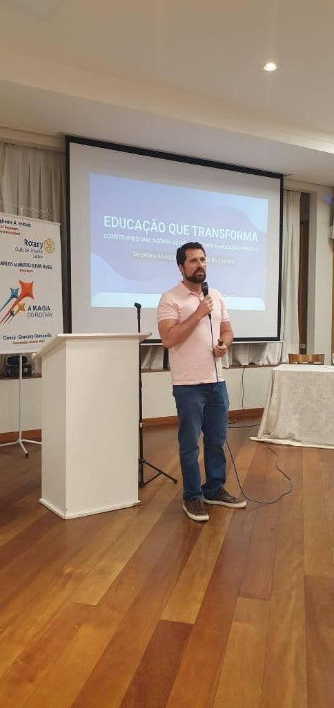No dia 4 de setembro, os Rotary Clubs de Joinville realizaram uma reunião conjunta no Restaurante Glória, proporcionando uma noite de integração e aprendizado. O destaque do evento foi a palestra intitulada O Cenário da Educação Joinvilense Infantil e Fundamental, ministrada pelo Secretário da Educação de Joinville, Diego Calegari.