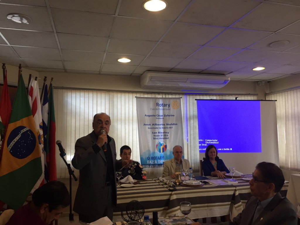 Na última reunião do Clube, sob a Presidência do Companheiro Augusto César Zeferino, foram apresentados projetos dos quais o Clube estará envolvido. O Companheiro Paulo Tatim expôs a importância do evento ANIME GAKUEN, que se realizará nos dias 09 e 10 de setembro e conta com a parceria do Clube, onde além de apresentação das atividades do Clube, do incentivo e promoção da cultura Japonesa, teremos a arrecadação de alimentos que serão destinados ao projetos do Rotary. Este projeto tem a coordenação do Companheiro ex-Presidente 2015-2016, Leonardo Tatim. Já a Companheira Janaina Prazeres, Presidente designada 2019-2020, apresentou o projeto Corrida do Bem do Sesi, onde o Clube realizara etapa do Projeto Hepatite Zero, no dia 17 de setembro.  O Presidente do Rotary Club Florianópolis - Ilha,  levou o convite para a 9ª Feijoada Mineira do Ilha, que ocorrerá no dia 03 de setembro e atenderá os projetos sociais do clube. Reunião intensa que contou com a apresentação do Intercambista do Clube e noticias do Rotary da Colômbia trazidas pelo Companheiro Josivaldo Silva.