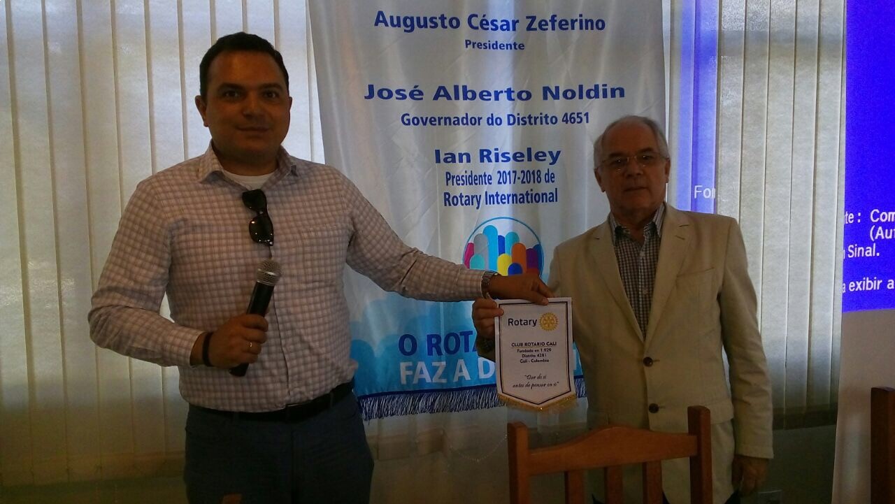O COMPANHEIRO JOSIVALDO SILVA ENTREGA FLÂMULA DO ROTARY CLUB DE CALI - COLÔMBIA
