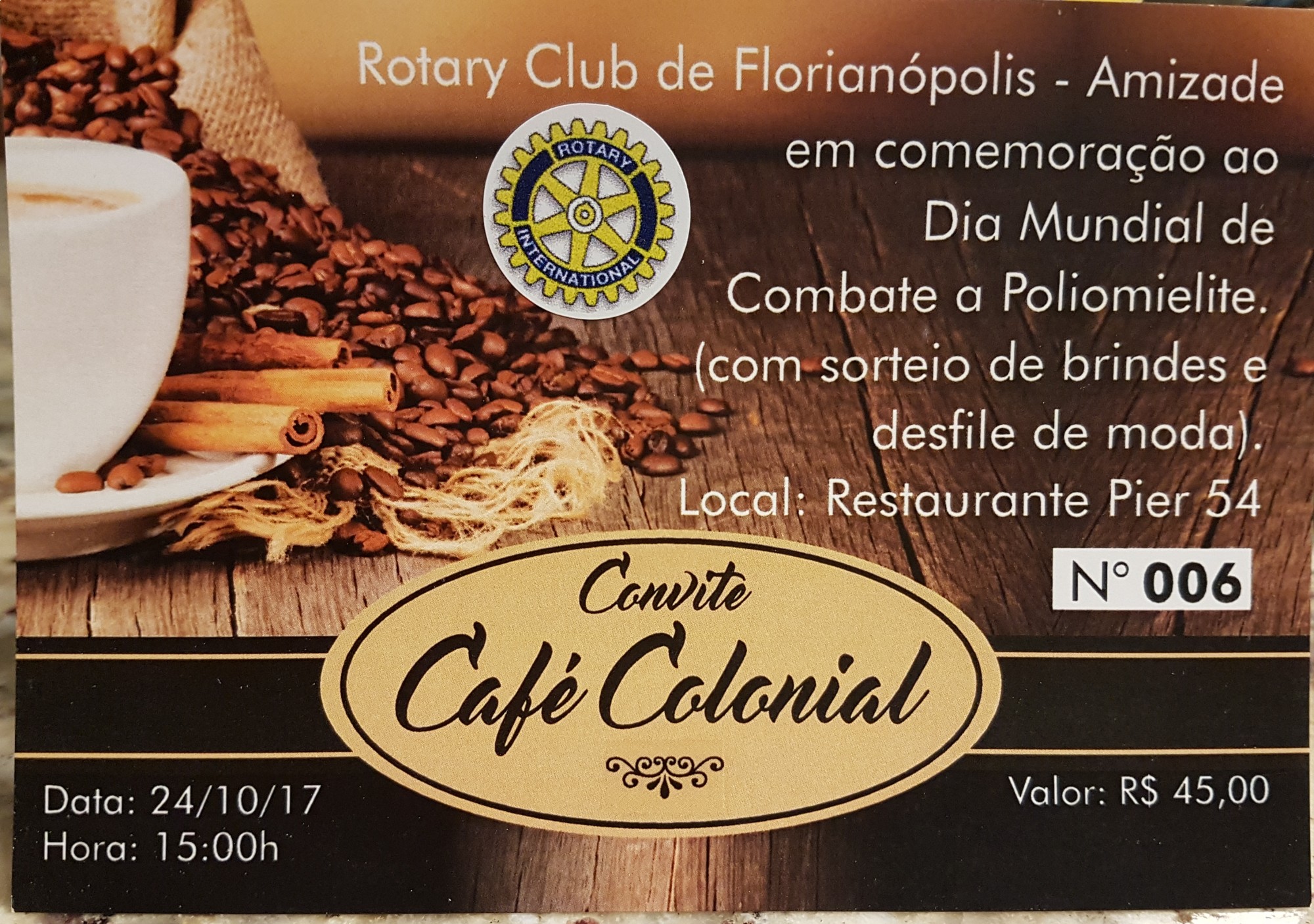No dia 24/10/17, as 15h, será realizado um grande Café Colonial no restaurante Pier 54 .