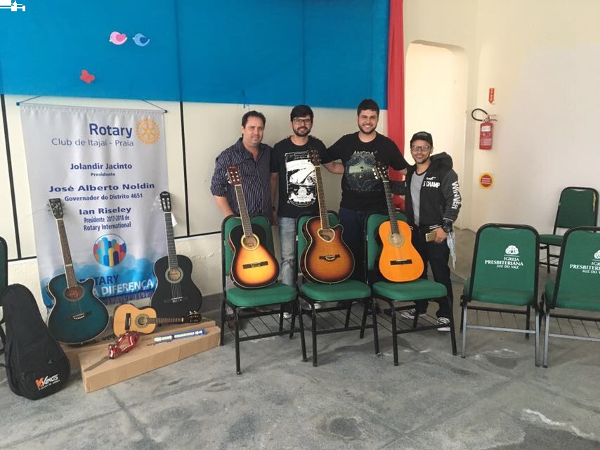 O ROTARY CLUB ITAJAÍ PRAIA entregou no dia 14/10/17 vários instrumentos musicais doados por membros do nosso Club ao projeto musical da Igreja Presbiteriana. São vários violões, cavaquinho, chocalhos entre outros instrumentos que servirão p/ ensinar mais de 14 crianças do projeto gratuito da igreja.