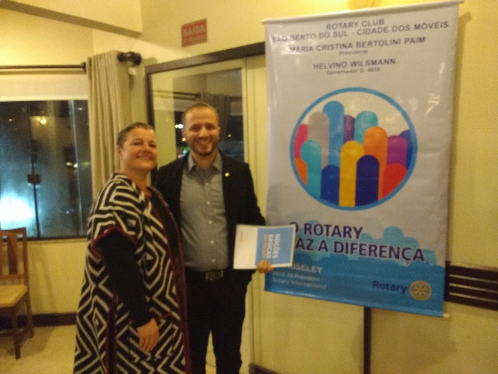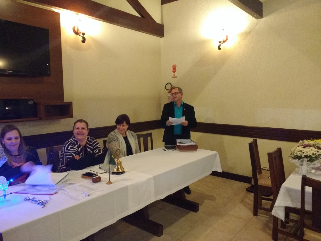 A solenidade foi conduzida pelo DQA Álvaro Gesser e os novos Companheiros receberam material com Nocões Básicas de Rotary, realizaram seu compromisso com o Rotary e receberam o distintivo de seus respectivos padrinhos.
