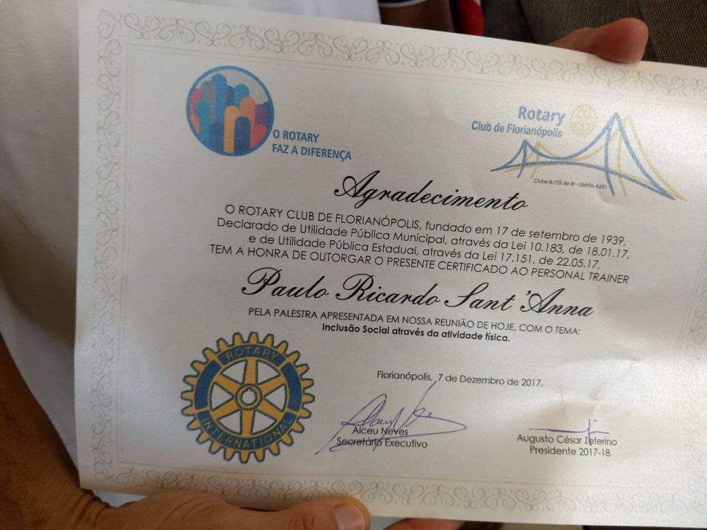 A "INCLUSÃO SOCIAL ATRAVÉS DA ATIVIDADE FÍSICA" FOI TEMA DE PALESTRA NO ROTARY CLUB DE FLORIANÓPOLIS