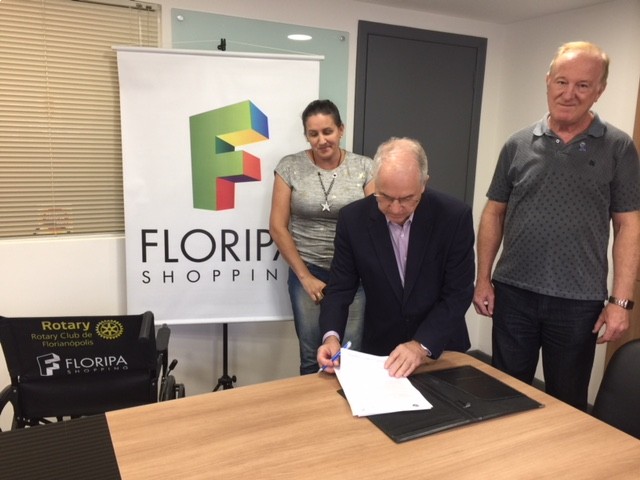 O ROTARY CLUB DE FLORIANÓPOLIS JUNTAMENTE COM O FLORIPA SHOPPING FAZ A ENTREGA DA PRIMEIRA CADEIRA DE RODAS DO PROJETO LACRE É CIDADANIA