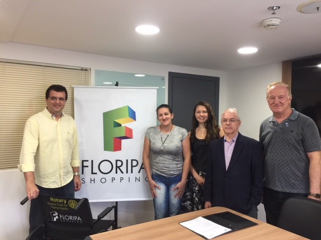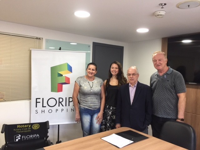 Os Companheiros Augusto César Zeferino, Presidente 2017-2018, Adriano Zanotto, Presidente 2016-2017 e Janaina Guesser Prazeres, Presidete designada para o ano 2019-2020, juntamente com o FLORIPA SHOPPING, representado por Priscila Toniolo e Erick Proença, fizeram a entrega da primeira Cadeira de Rodas do Projeto Lacre é cidadania. O CANTINHO DOS IDOSOS localizado em Ratones foi a beneficiária da doação, que no ato foi representado pela Assistente Social Nirce Maria Pires Garcia. O Presidente 2016-2017, Adriano Zanotto, esclareceu aos presentes a forma de arrecadação a partir deste momento. O evento foi prestigiado pelo Rotary Club de Florianópolis-Jurere, através de seu presidente o Companheiro Moacir Jungblut. Juntos fazemos a diferença na vidas das pessoas. LACRE É CIDADANIA.