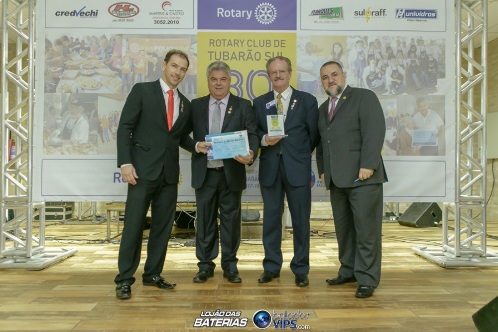 A noite de homenagens do Rotary Club de Tubarão Sul contou com a entrega de um título Paul Harris representado pela 3ª Safira ao Companheiro Dilney Vechi, único fundador do clube ainda presente e também o primeiro presidente do RC Tubarão Sul.