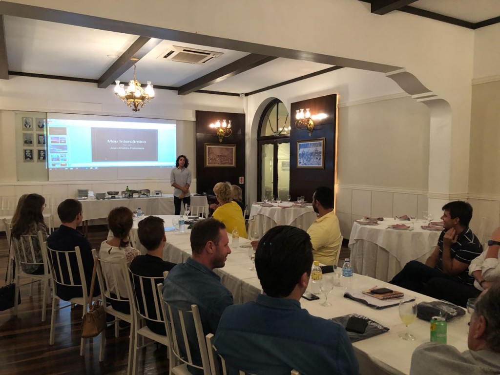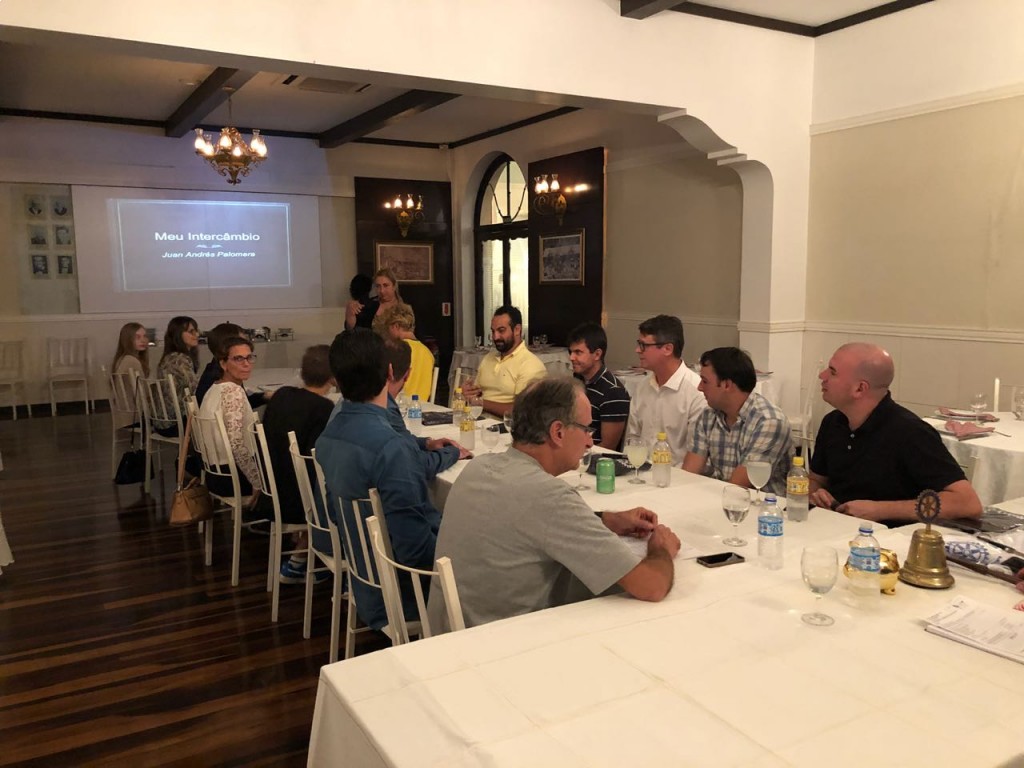 A 28ª Reunião do RC Blumenau Oeste, contou com a presença de dois futuros canditados ao programa de intercambio que prestigiaram a apresentação do intercambista Juan Andrés Palomera do México, contando como esta sendo a seu intercambio, suas experiências e desafios vividos neste ano de muito conhecimento. Na ocasião ele apresentou momentos das suas viagens, seus novos amigos, as familias por onde passou, seu colégio. Ele ficou imensamente feliz por ter vindo ao Brasil e guardará no coração tudo e todos que conquistou.