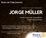 O Rotary Club de Blumenau Oeste, comunica com pesar o falecimento do JORGE MÜLLER, amado esposo de nossa companheira Marlies Maike Müller.