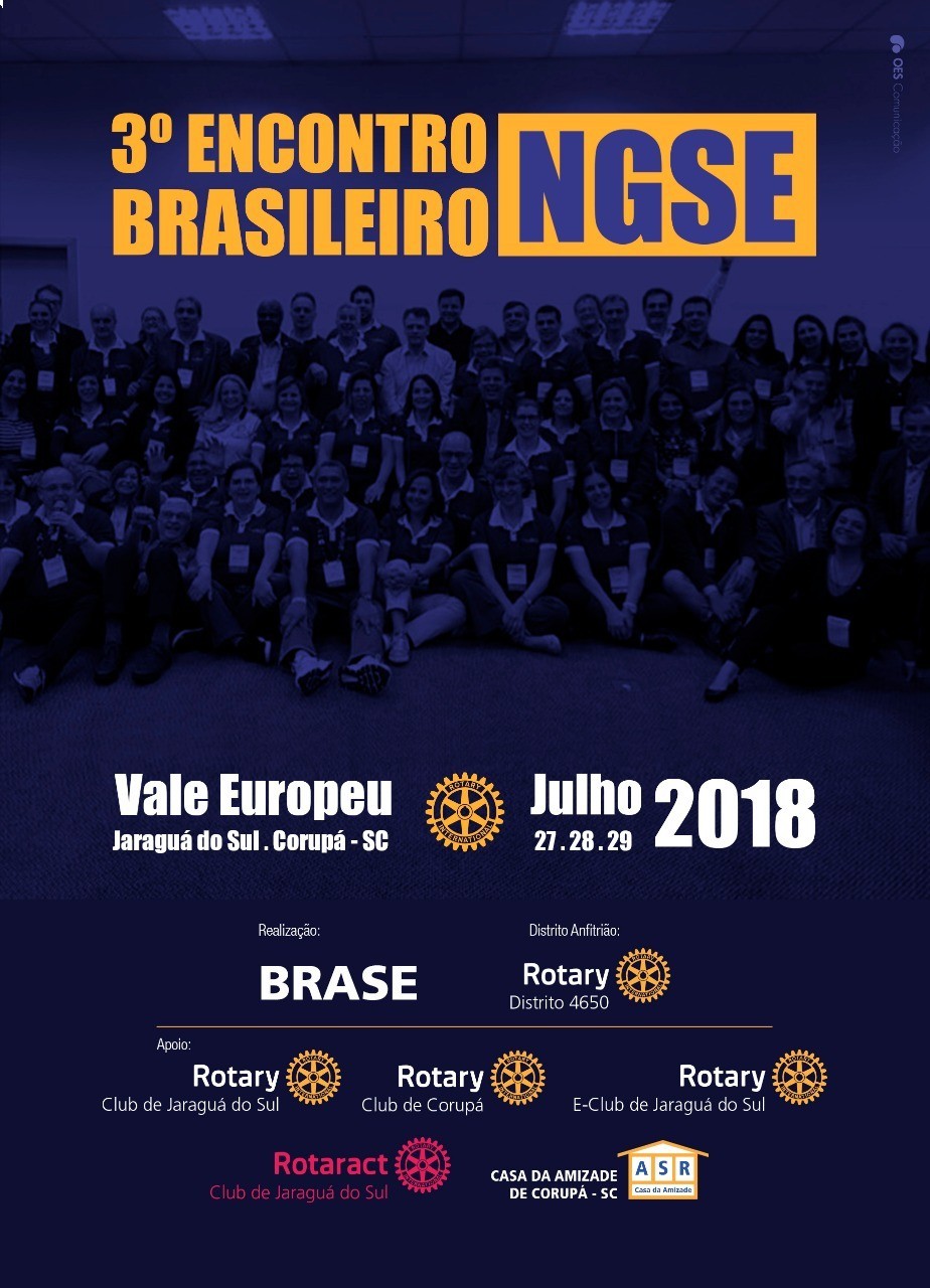 O Distrito 4650 do Rotary International promove neste final de semana, o 3º Encontro Brasileiro de Intercâmbio de Serviços às Novas Gerações (NGSE) do Vale Europeu. Ele ocorrerá a partir desta sexta, dia 27, prolongando-se até domingo, em Corupá, no Hotel Tureck Garten, na BR-280, 10, no bairro Pedra de Amolar.