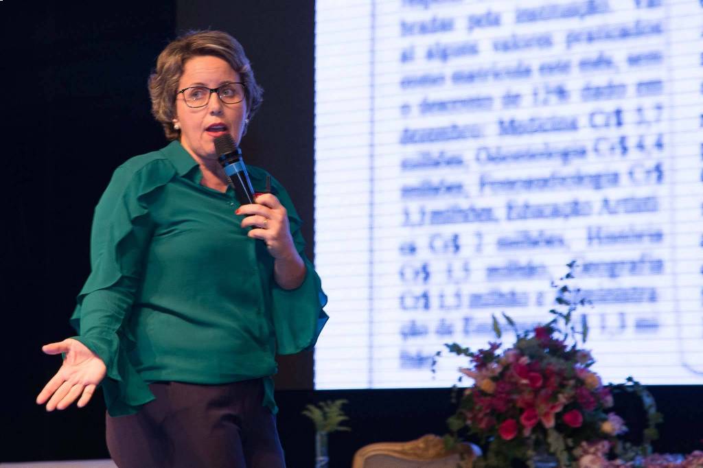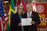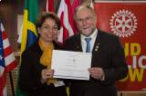 Sandra Sahd subiu ao palco às 10h40 para falar da ONG “Embaixadores da Prevenção que ensina os significados das virtudes para as crianças, do jeito que elas mais gostam: por meio de brincadeiras lúdicas. A ONG faz com que as crianças entendam o significado da coragem, justiça, sabedoria, determinação e responsabilidade, sempre através de livros infantis. Ao final, não escondeu a emoção após se aplaudida de pé pela Família Rotária.