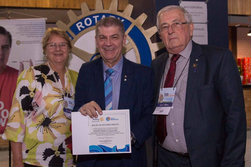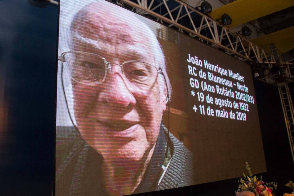 Após o almoço e a reunião da Represi, com votação de Moções, os trabalhos foram retomados e já começou com muita emoção na homenagem prestada ao Governador João Henrique Mueller, com a presença viúva Medi, do filho Walter Mueller e integrantes da família do saudoso governador. Também prestadas homenagens póstumas aos demais companheiros e esposas que faleceram durante o Ano Rotário 2018-19.