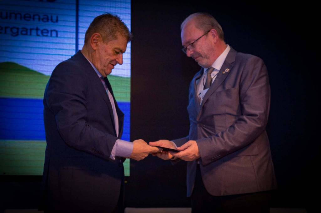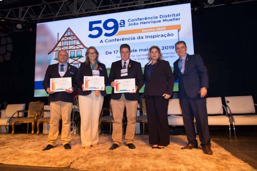 A ampliação dos Núcleos Rotários de Desenvolvimento Comunitário (NRDC) no Distrito e o case do RC de Rio do Sul – Centenário, antecederam um dos momentos mais aguardados da Conferência: o anuncio de premiações aos Clubes pelo cumprimento de metas e das Moções de Reconhecimento.
