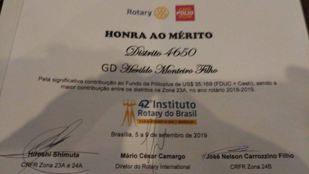 Na oportunidade do evento, o governador Helvino Wilsmann (2019-2020) realizou a apresentação do projeto: "8 Máquinas de Hemodiálise". O governador (2018-2019) Herildo Monteiro Filho, recebeu um reconhecimento de Honra ao Mérito pela efetivação da maior contribuição ao Fundo da Pólio Plus, da Área 23A, relativo ao ano rotário 2018-2019. O valor total de doação foi de 35 mil dólares para ações para erradicação da poliomielite no mundo.