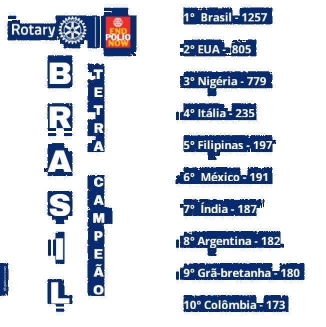 Os rotarianos brasileiros conquistaram a competição do bem, superando a meta, com um total de 1.257 eventos registrados referente à Campanha de Erradicação da Pólio.