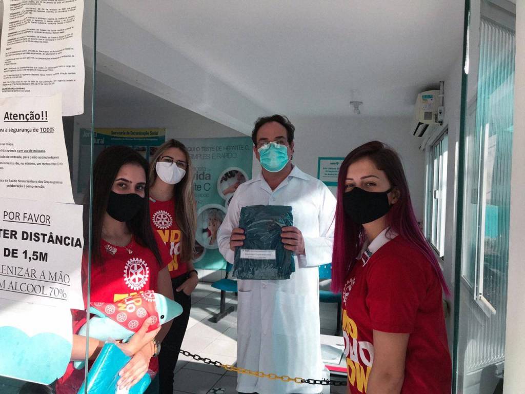 Membros do Interact Club de Navegantes entregaram, esta semana, 25 macacões (Equipamento de Proteção Individual – EPI) para dentistas dos postos de saúde e para alguns profissionais que atuam no Centro de Atendimento do Covid-19 no município de Navegantes.